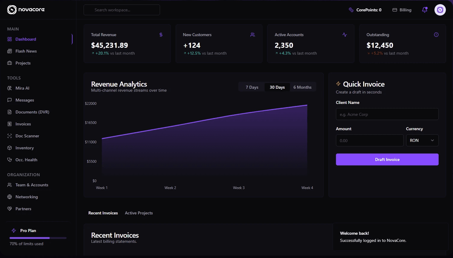 NovaCore transforms the way companies connect, manage, and grow together by bringing essential tools, partners, and automation into one intelligent platform.